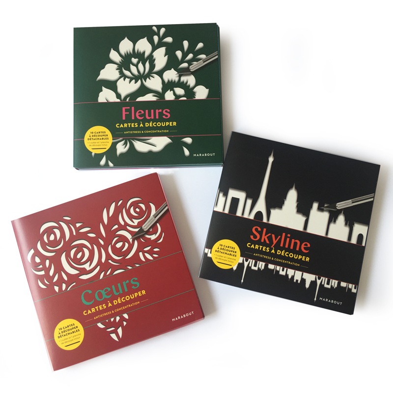 Un coffret contenant 10 cartes à découper avec un petit scalpel. Il suffit de suivre le contour des formes blanches, et vous obtenez une carte que vous pouvez détacher, et exposer, devant une source lumineuse par exemple, afin de créer un jeu d’ombres chinoises!